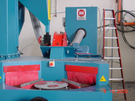 Custom made single wheel six table shot blasting machine, This machine is fitted with 1 ( specially import from UK ) off standard 300mm effective diameter direct mounted wheel units, driven by a 7.5Hp wheel motor with speed variation through a frequency inverter. The machine is generally as shown on attached drawing.